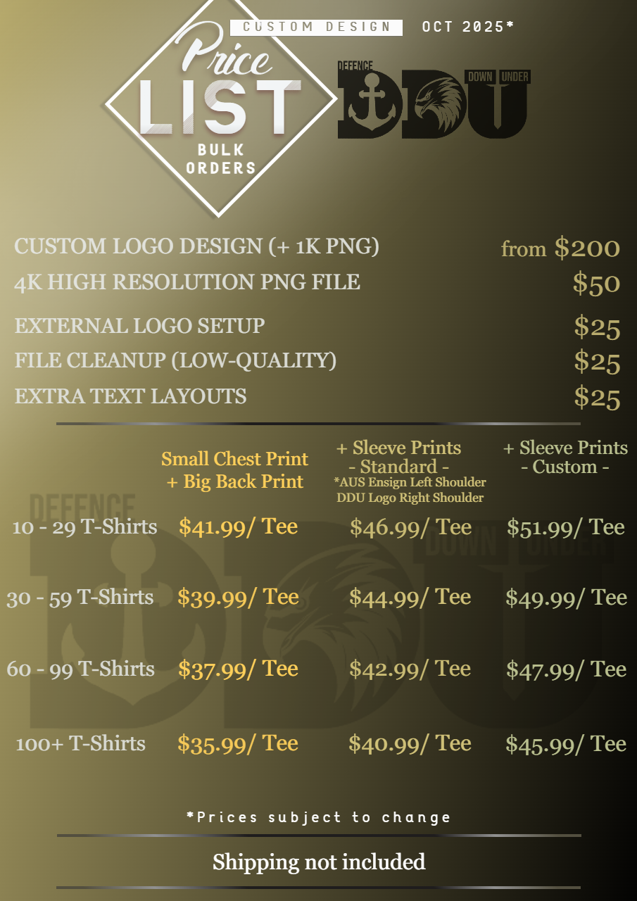 You are bringing your original unit crest logo for a chest print? No problem! Please check with your team to see if you can get hold of the original high-quality logo file for the best printing results. If you only have a low-quality file, don't worry, we may still be able to work our magic on it. Just keep in mind that there's a $25.00 charge for setting up an external logo.